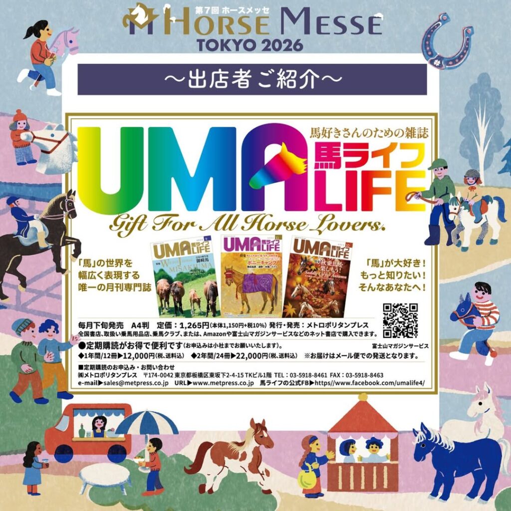 📣出店者さまからのメッセージ🗣️ 国内唯一の乗馬専門誌『馬ライフ』は、馬と暮らすライフスタイルを多角的に紹介。馬術大会、乗馬スポット、世界の馬カルチャーなど情報... -