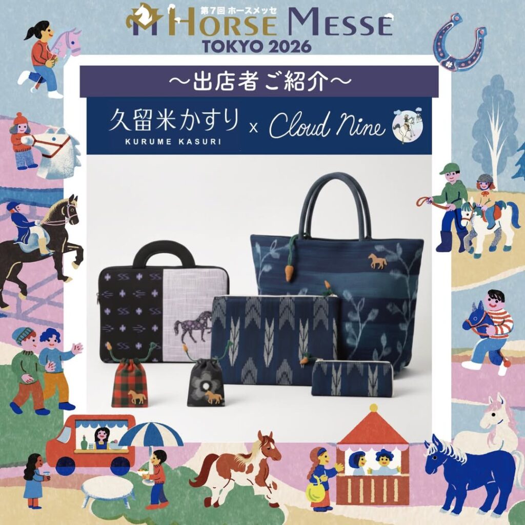 📣出店者さまからのメッセージ🗣️ Cloud Nine x 久留米かすり は、220年以上受け継がれる手織りの布を馬のある日常へつなぐコラボ。天然藍の綿は洗えて丈夫、使うほどや... -